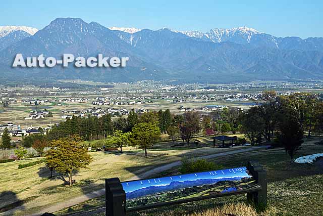 お勧めの展望所は2ヶ所あるが、クルマでのアクセスがよく、駐車場も広くて車中泊もできるのが「あずみの池田クラフトパーク」だ。