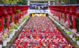 神社の石段雛飾りといえば伊豆の「稲取」が有名だが、実はその”元祖”はここ「勝浦」で、2001年(平成13年)に始まった。
