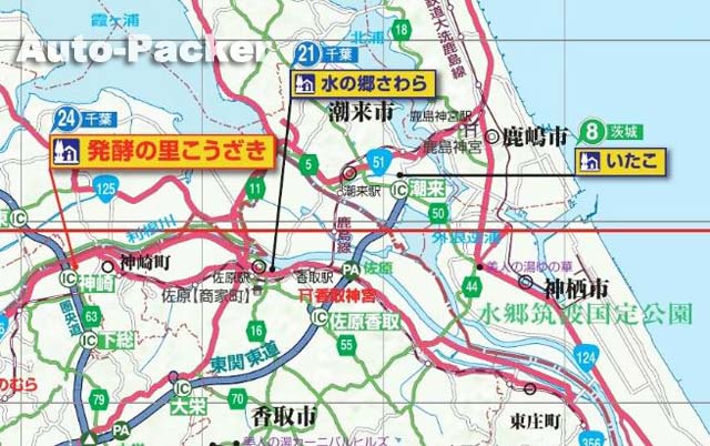 「道の駅 水の郷さわら」のアクセスマップ