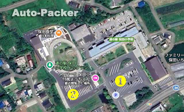 そして航空写真の❷が、隣接していた「旧鋸南(きょなん)幼稚園」の跡地を2023年(令和5年)10月に整備し、RVパークを加えて増床した「保田小附属ようちえん」で、82台が停められる平坦な駐車場が新たに加えられている。
