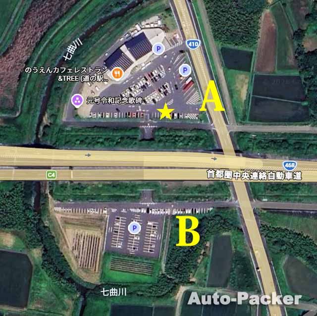 「道の駅 木更津うまくたの里」の駐車場は、駅舎の前のAと圏央道を挟んだ臨時駐車場的なBの、大きく2ヶ所に分かれている。