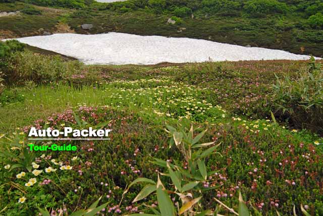 夏山登山の経験がある人はご存知だと思うが、高山植物の咲く時期はまだ日陰に雪が残っており、散策路にぬかるみや水たまりがあることは珍しくない。