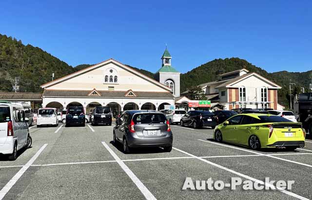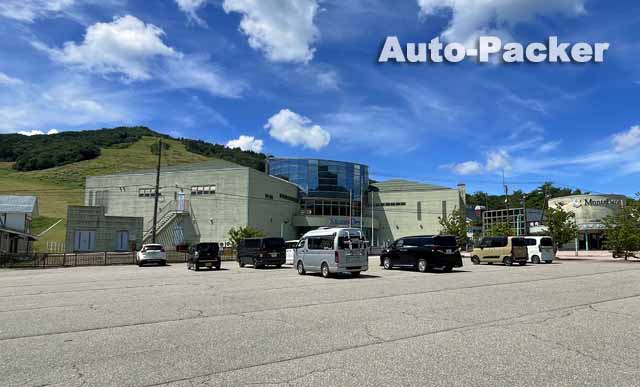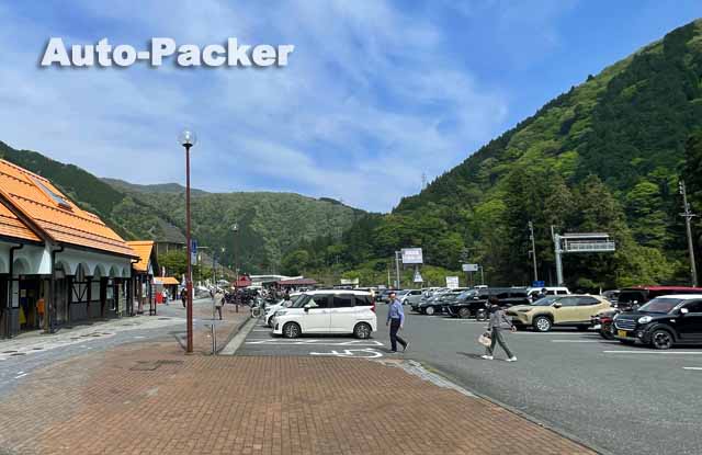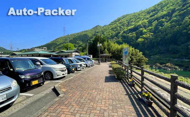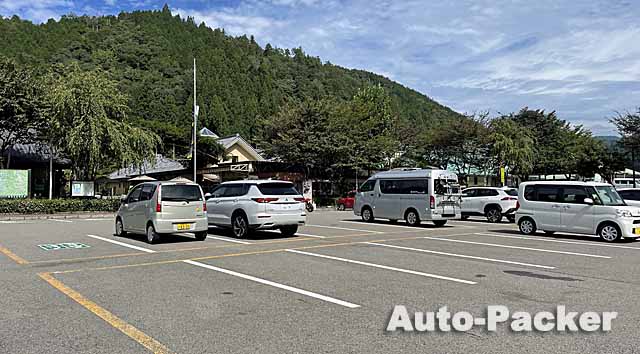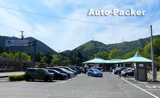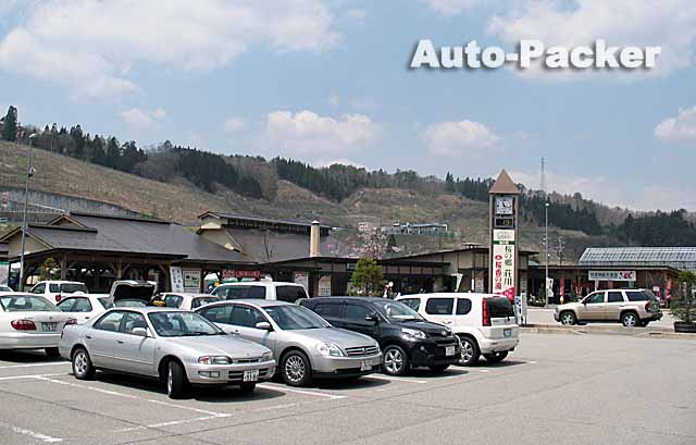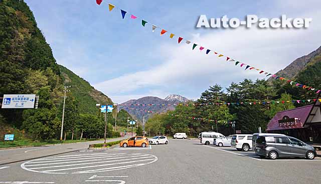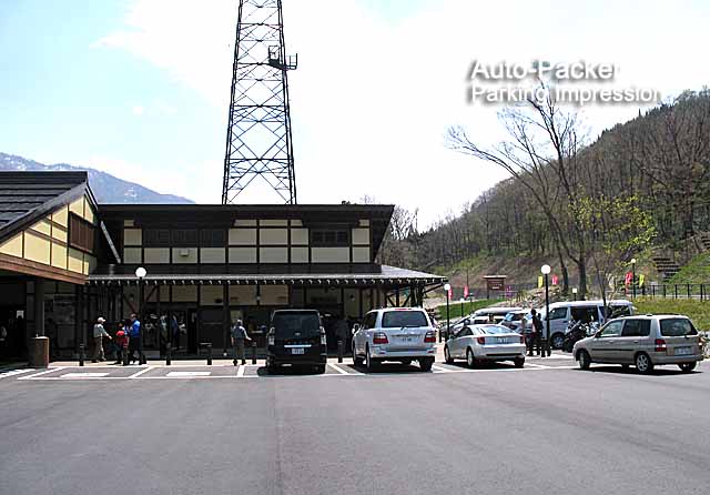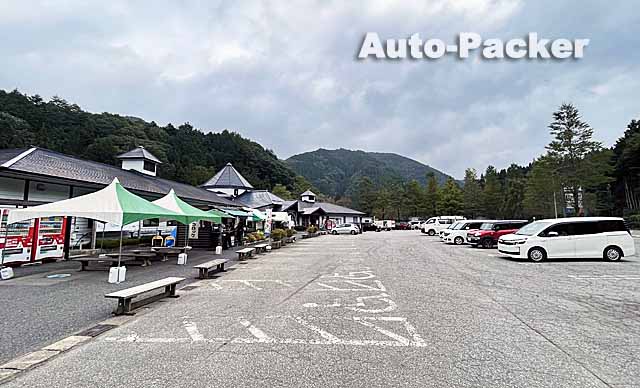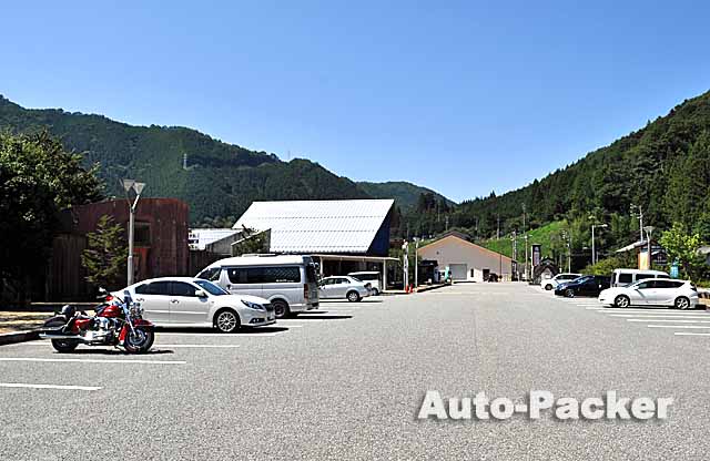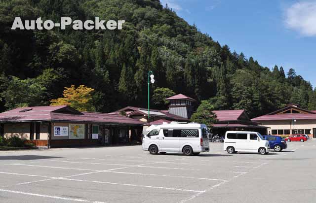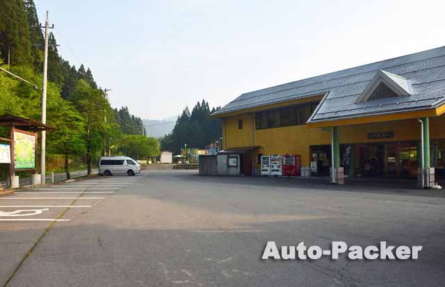写真では分かりづらいが、この「道の駅 大日岳」は峠道の途中にあるため、駐車場は初心者ゲレンデ並に傾斜している。