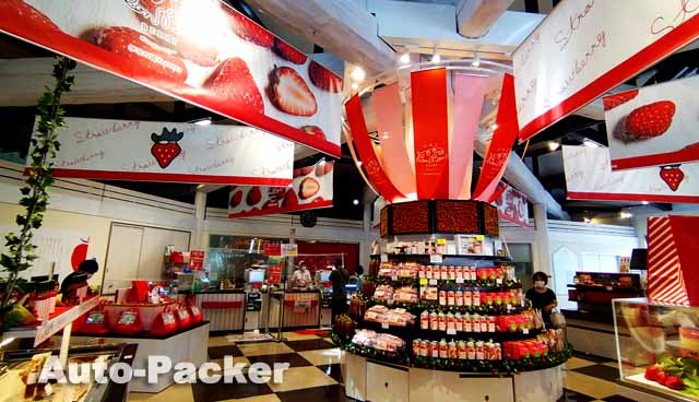 いっぽうこちらは「伊豆いちごファクトリー」の店内。「伊豆・村の駅」と同様、入場者に強いインパクトを与える演出だ。