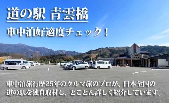 また高千穂観光の前泊あるいは後泊には、「道の駅 高千穂」から約13キロ・15分ほど宮崎方面に走ったところにある「道の駅 青雲橋」が使える。