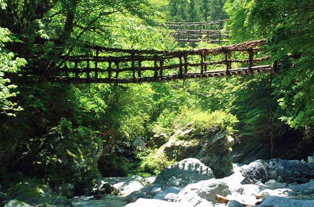 シラクチカズラ(重さ約5トン)で作られた、長さ45メートル・幅2メートルのこの橋には、「弘法大師」が「祖谷」に来た時、困っている村民のために架けた、あるいは平家の落人がこの地に潜み、追手が迫ってもすぐ切り落とせるように葛(かずら)を使って架設したとの伝説が残る。