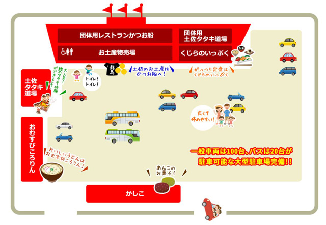 「土佐タタキ道場」は、「坂本龍馬」の銅像が建つ「桂浜」からクルマで5分もかからない、県道14号沿いに建つドライブインレストラン「かつお船」の一画にある。