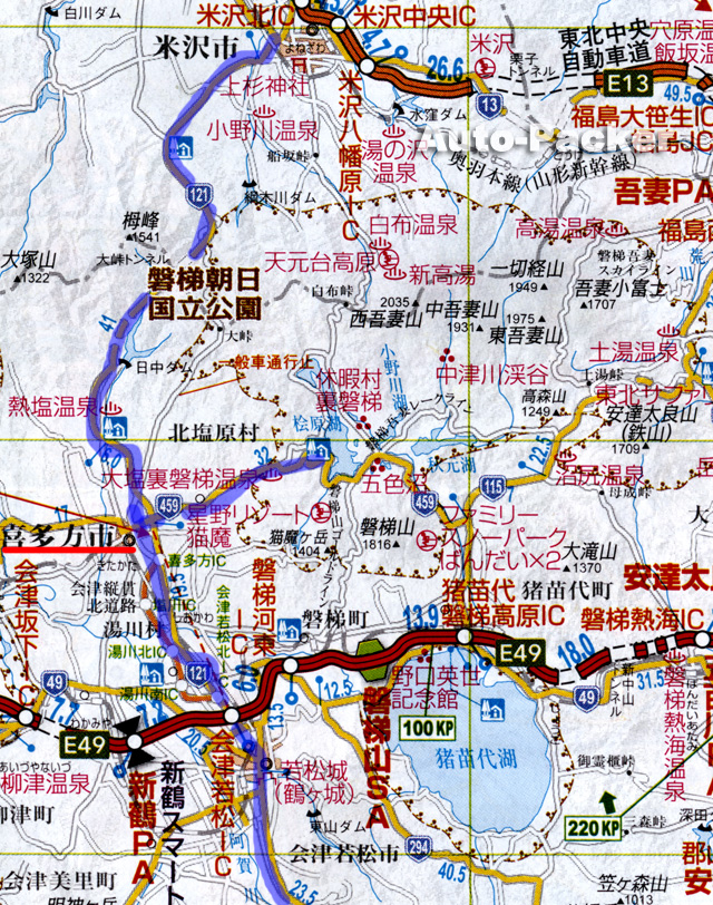 栃木県の「日光」「那須」方面から、福島県の「会津若松」を超えて、山形県の「米沢」へと通じる国道121号は、地道で北関東から南東北を旅する際の主要経路だ。