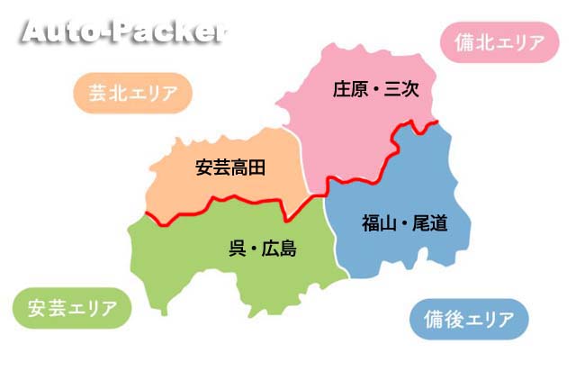 広島県は大別すると、赤でラインを引いた、芸北・備北の中国山地エリアと、安芸・備後の瀬戸内海エリアの2つのブロックに別れており、道の駅の分布を見ると、中国山地エリアには15件、瀬戸内海エリアには6件と、明らかに中国山地エリアのほうに多く集まっていることが分かります。