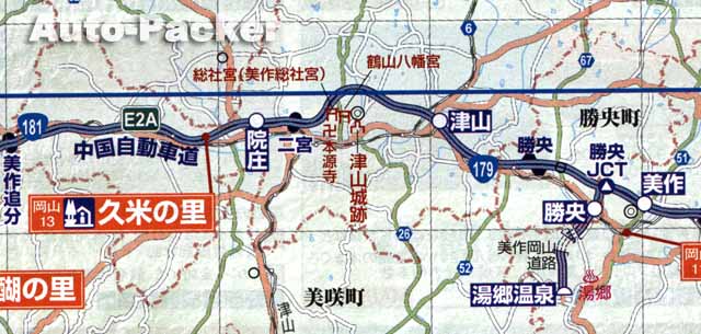 「道の駅 久米の里」は、津山市の国道181号線沿いにある道の駅で、中国自動車道の「院庄インター」から、約3キロ・5分、また日本100名城に認定されている「津山城」から、約8キロ・10分ほどのところにある。