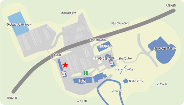 こちらが「道の駅 黒井山グリーンパーク」のレイアウト図だが、「ブルーライン」の開通当初は、ゴーカートや小規模ジェットコースターなどの遊具があり、道の駅ではなく遊園地であったというだけあって、その敷地は広大だ。