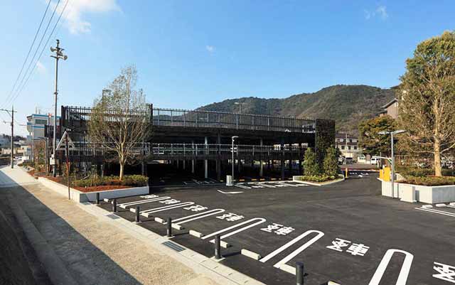 2017年2月に2階建ての立体駐車場にリニューアル。トータル3層で1階にはトイレを完備しているが、1.2階のフロアには2.1メートルまでの高さ制限がある。