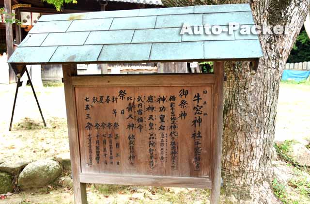 その伝説は、古墳時代に「神功皇后」が船で九州へ向かう途中に、この地で「牛鬼(うしおに)」という怪物に襲われたが、そこに老人に化けた「住吉明神」が現れ、「牛鬼」の角をつかんで海に投げ倒して退治したという物語で、「牛窓」の語源は、その「牛転び(うしまろび)」が根拠になっているという。