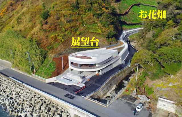 「灘黒岩水仙郷」には、レストハウスというのか、はたまた展望台と呼ぶのか定かではないが、1977年(昭和52年)に民間によって建設されたこの建物があった。