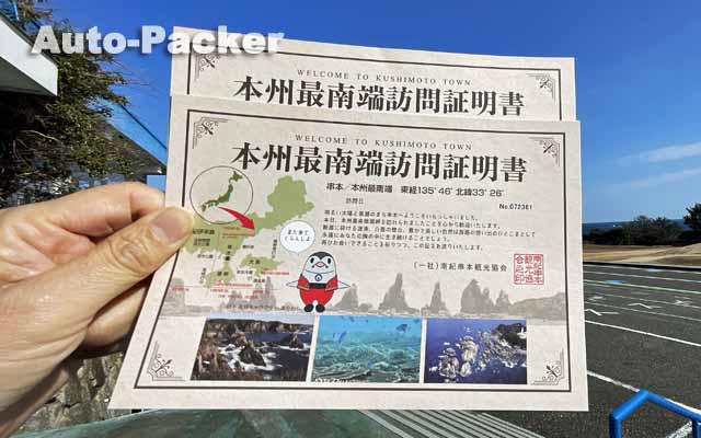 串本町は本州の最南端の町。本州最南端訪問証明書は潮岬観光タワーの入場料とセットで300円