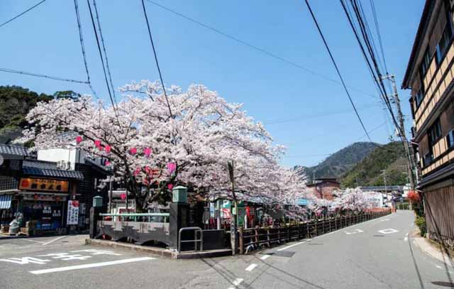 残念ながら、筆者はこの季節に城崎温泉を訪ねたことがないのだが、「鴻の湯」の前の道は「桜小路」と呼ばれる並木道になっていて、並木の左側に「薬師公園ポケットパーク」と名付けられた広場が設けられている。