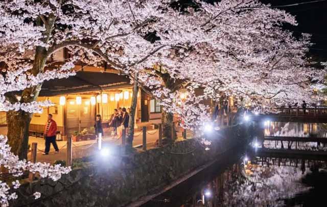 とりわけお勧めなのは、ホタルが舞う姿が見られる6月中旬から下旬頃で、「木屋町小路」と「まんだら湯」の間の大谿川岸で、夜の8時半から9時頃に見ることができる。
