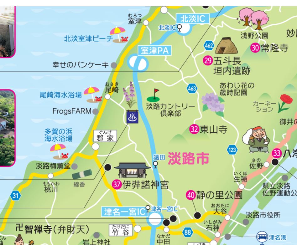 その時にできた島が「自凝島(おのころじま)」で、それが後に「淡道之穂之狭別島(あわじのほのさわけのしま)」こと、現在の淡路島になったという。